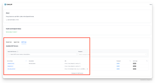 Users can now discover the MCP server via the public endpoint (PROXY_BASE_URL/ui/model_hub_table)